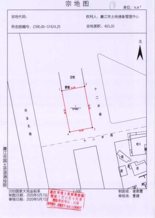 2、宗地位置:廉江市创业路东侧地块。