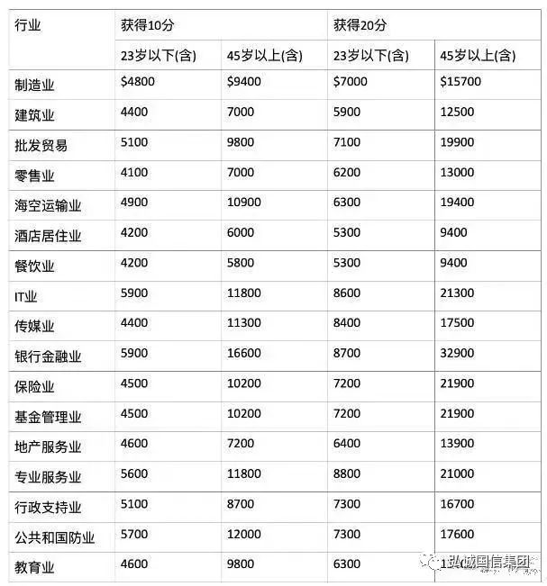 C1-薪资:这个其实比较好理解而且也和以前EP申请的条件基本没太大变化,新的政策让申请者更加清晰的了解到了各个行业不同年龄段EP申请者的薪水要求;具体薪水和可获评分如下: