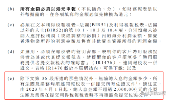不过,今年香港税务局相比往年有重要变化:"由2023年4月1日起,总入息金额不超过2,000,000元的小型法团及业务在提交利得税报税表时不再获豁免提交佐证文件。"