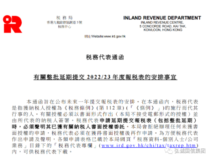 近日,香港税务局发布了税务代表通函——有关整批延期提交2022/23年度报税表的安排事宜,表示将于4月3日向属于「活跃」档案的法团和合伙业务整批发出2022/23年度的利得税报税表。