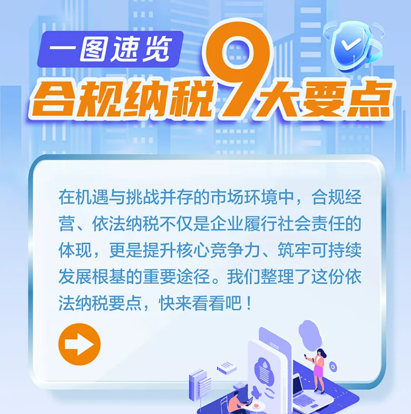 在机遇与挑战并存的市场环境中,合规经营、依法纳税不仅是企业履行社会责任的体现,更是提升核心竞争力、筑牢可持续发展根基的重要途径。我们整理了这份依法纳税要点,快来看看吧!