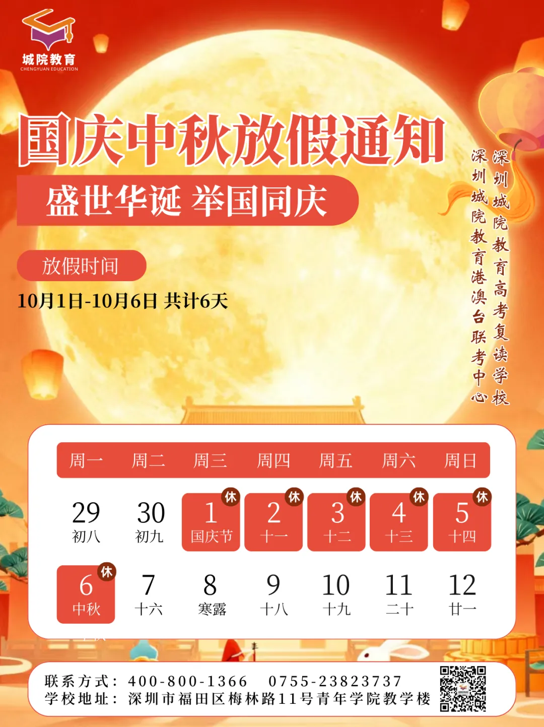 学生返校:10月6日(星期一)晚上返校参加晚自习