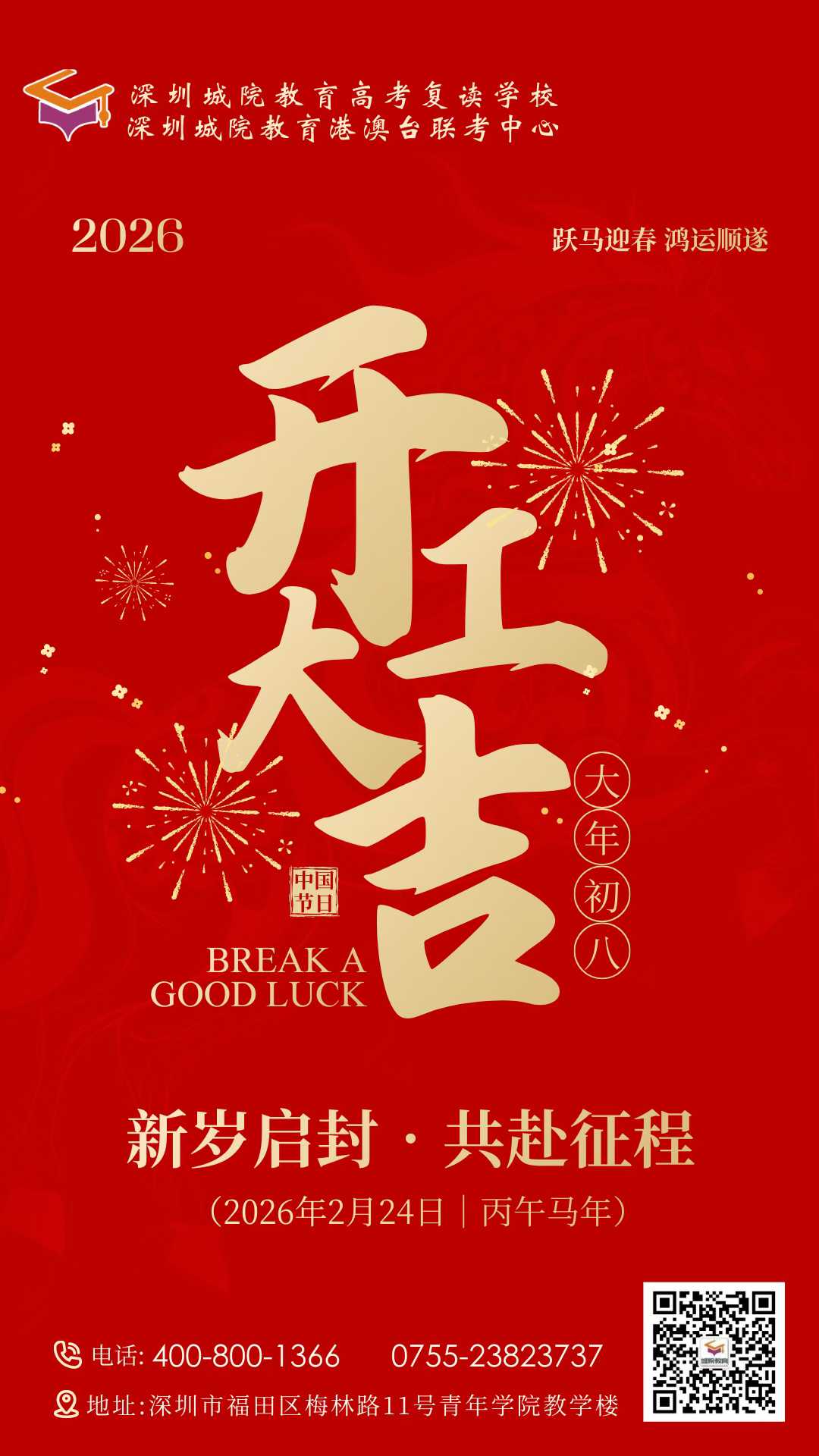 学大教育深圳城院高考学校,已如骏马奔腾,全力启航!愿与每一位学子及家长并肩前行,共迎新年鸿运相随,金榜题名!
