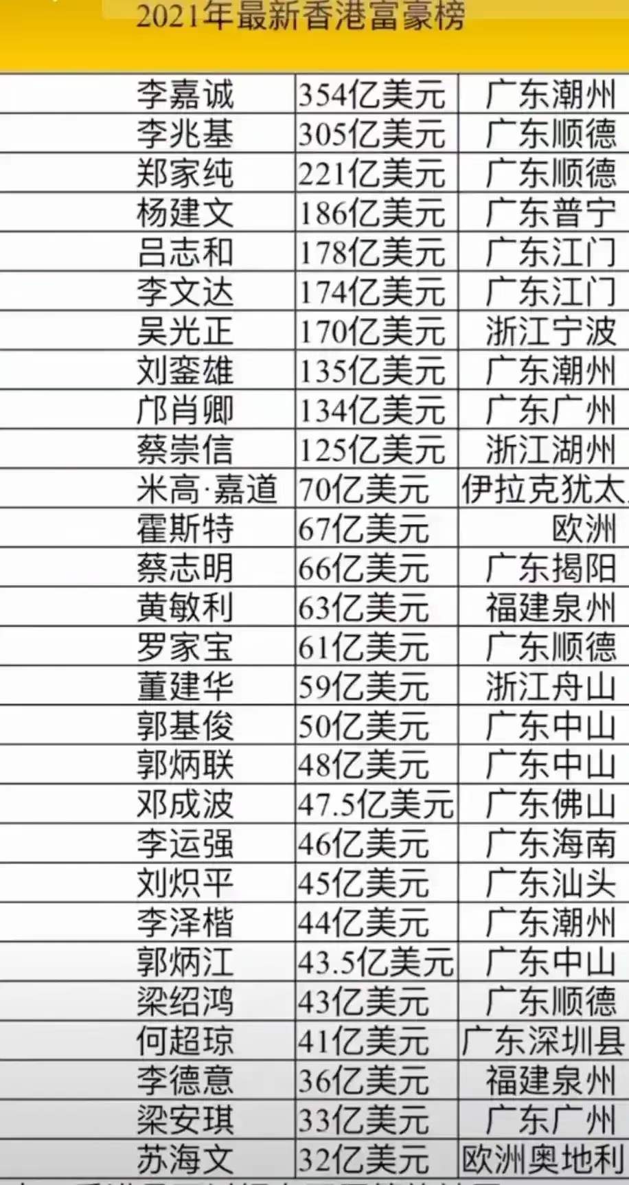 2021香港富豪排行榜李嘉诚、李兆基领航,广东人占大部分