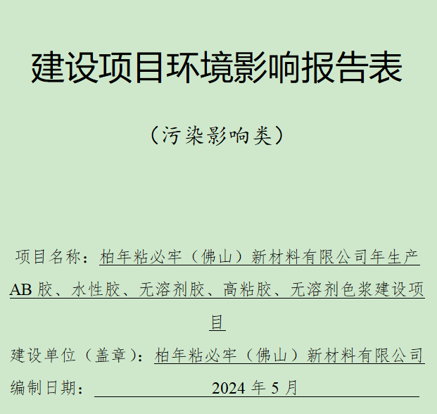 项目名称:柏年粘必牢(佛山)新材料有限公司生产AB胶、水性胶、无溶剂胶、高粘胶、无溶剂色浆建设项目