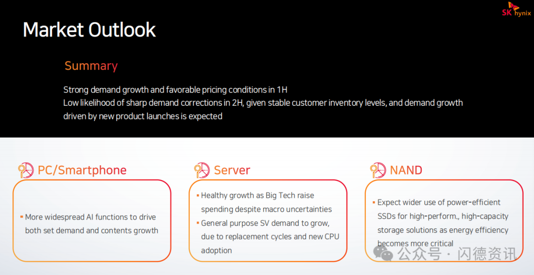 SK 海力士近期表示,NAND 市场疲软状态预计将持续一段时间,核心原因在于消费端需求停滞,且 AI 服务器投资尚未延伸至存储设备。 回溯第二季度,尽管企业级 SSD 需求因超大规模客户 AI 投资扩大而增长,叠加关税不确定性推高零部件汇总需求,且中国地区移动堆栈构建需求因策略性降价显著增长,带动 NAND 出货量超预期,但消费类终端设备需求乏力,导致市场整体承压。 不过,长期来看,AI 应用的爆发或重塑 NAND 需求。随着海量数据生成,传统存储方案难以满足需求,行业正尝试将 AI 推理数据缓存至 eSSD,这一趋势若成型,eSSD 将从单纯存储设备演变为计算缓存的一部分,在 AI 系统中角色升级。SK 海力士预计,相关需求将在未来 2-3 年内显现,成为 NAND 市场增长的重要起点。 目前,SK 海力士第二季度库存已恢复正常,未来将灵活调整生产与库存策略,等待 AI 存储需求释放。