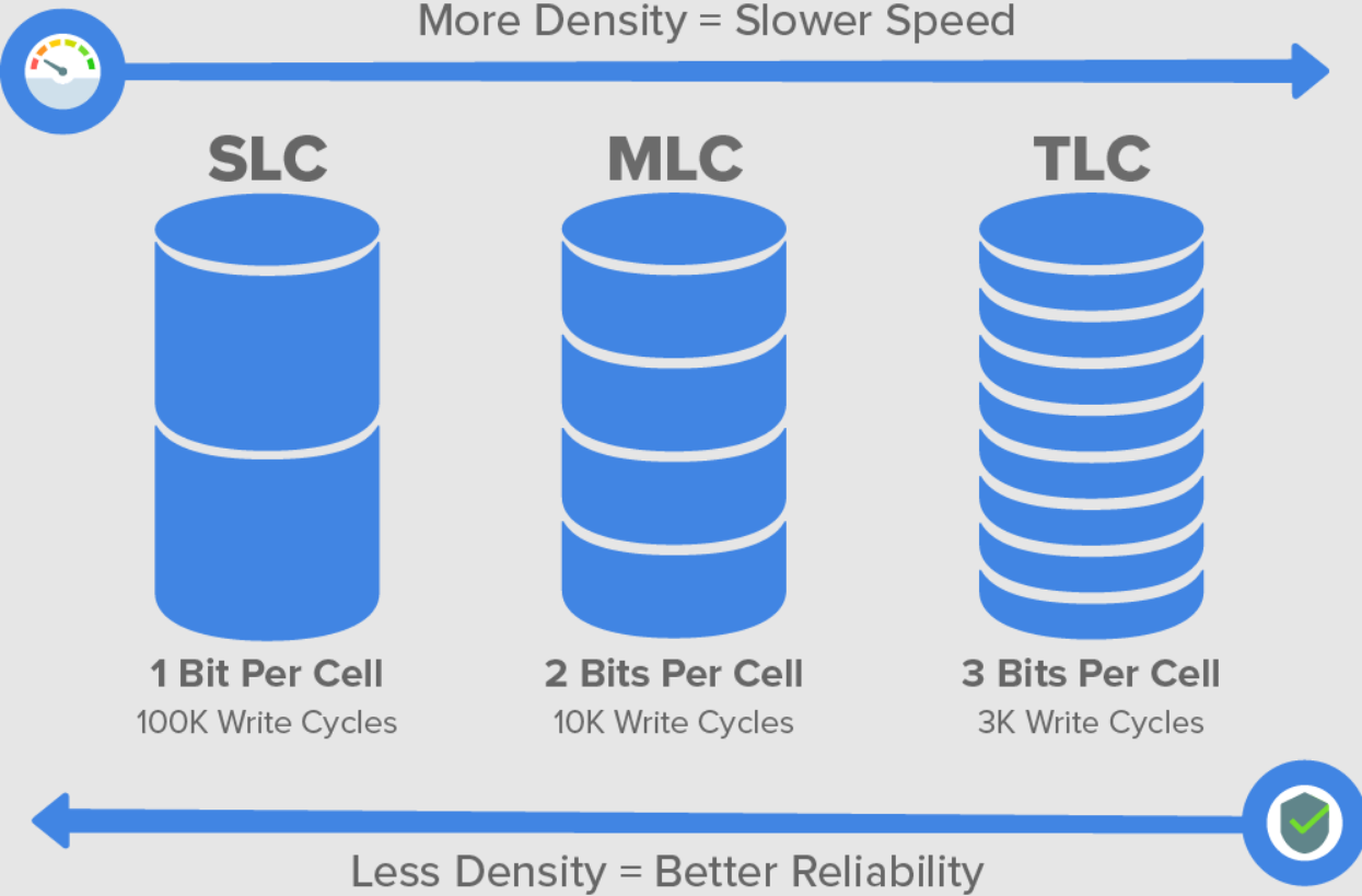 容量限制与降速:SLC Cache的可用空间有限(通常为SSD总容量的5%~10%)。当持续写入超过该阈值时,速度会回落至TLC/QLC的原始水平。例如,1TB TLC SSD可能提供约70GB~120GB的SLC Cache空间。