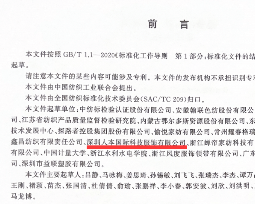 近日,《GB/T 46729—2025 纺织品 智能纺织品术语和分类》国家标准正式发布,将于2026年5月1日起实施。深圳人本国际科技服饰有限公司作为该标准的核心起草单位之一,与