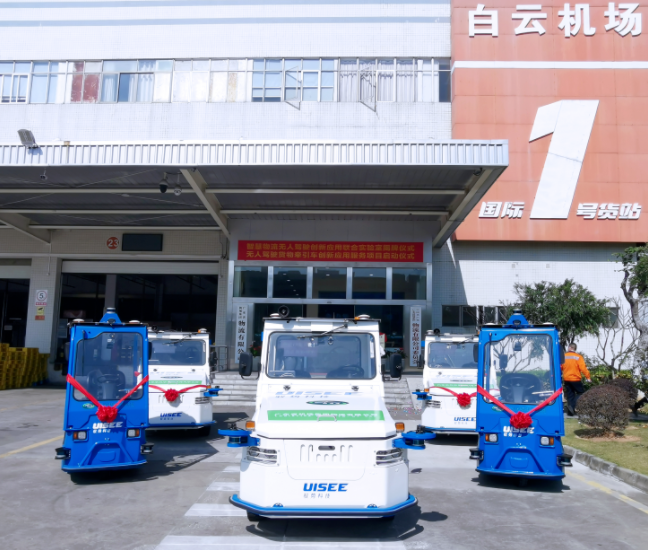 驭势科技无人驾驶牵引车开启广州白云机场货物运输