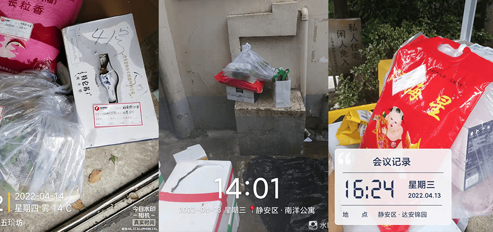 值得一提的是,在4月13日,连续两天30°高温之后上海遭遇8级大风暴雨天气。大雨如注,货场工作人员穿着雨衣搬运物资的脚步依然坚毅;配送司机过深深的积水把物资送到门口,回到车上时雨水顺着发梢脸颊滴落。当天,依然有253件物资安然到达200多户家庭。
