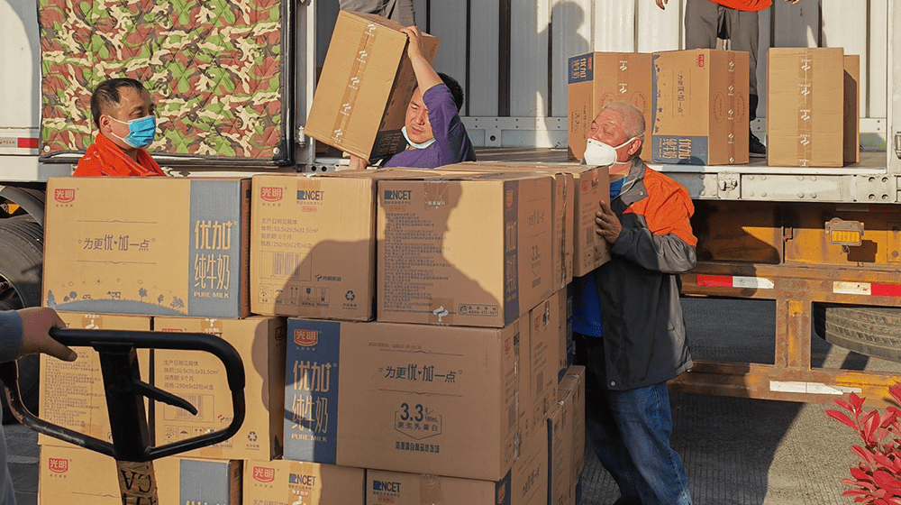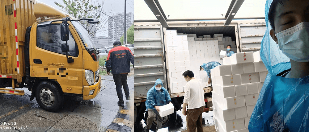 在有农心选一件起送保供套餐推出的第一天,4500份物资很快被抢购一空,迄今累计已有订单超2万份。从客户下单到送达期间,发网作为配送方,抽调各部门所有能调动的人员组成一个20到30人的负责组,承担每日的接车、装卸、调度、销售、售后等工作。平均每天50-60辆车从宝山发往上海全城,送达每一个小区的门口。