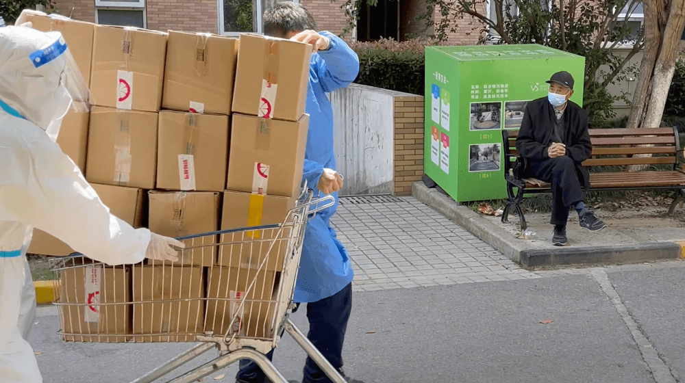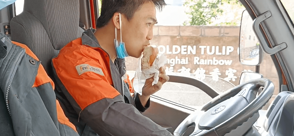 “我们一线的配送司机每天从早上7点多就进入驾驶室开始配送工作,中午自己带个面包和水凑合着快速解决,一天配送50份左右的物资,几乎要14个小时一直待在车内,直到夜间23点回到出发地做核酸检测”,发网配送负责人卢跚跚如是说。