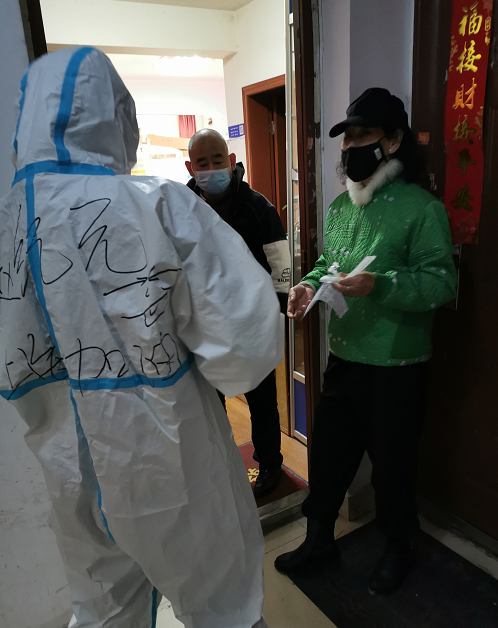 到达目的地后,德邦快递6人志愿者小组换上防护服,化身大白,成为了疫情防护工作者中的一员。认领物资之后,他们2人一组,被分配到负责3栋楼平均150多户、将近600多名业主的核酸抗原自测任务。