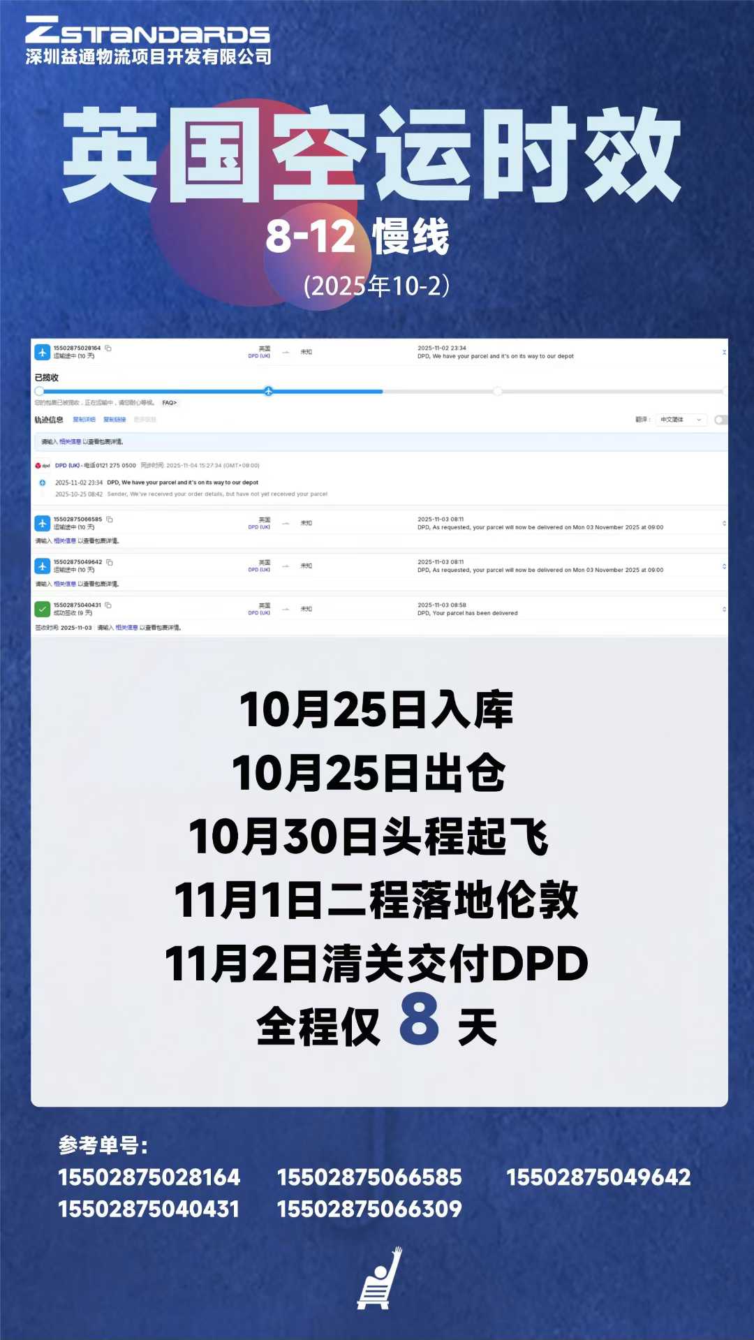 益通物流/真标物流英国空运时效8-12 慢线 (2025年10-2)