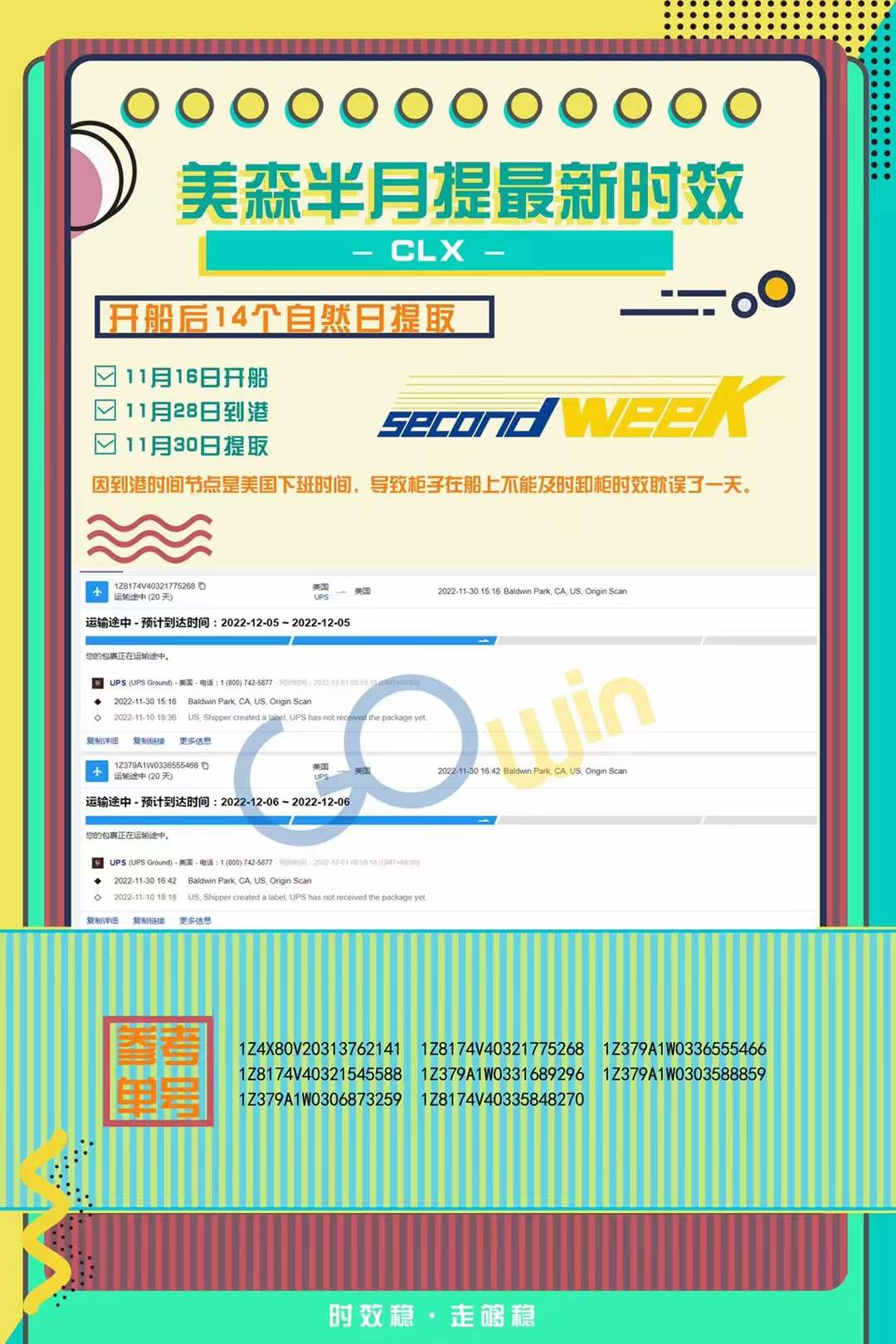 够稳物流·美森CLX半月提时效(2022/11/30提取)