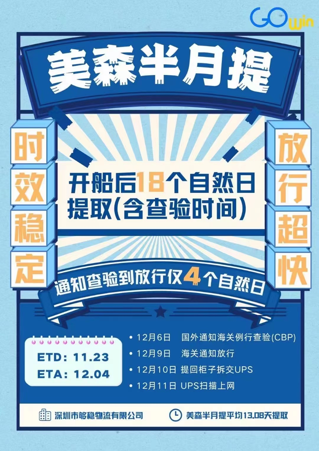 够稳物流·美森半月提时效稳定,放行超快,开船后18个自然日提取
