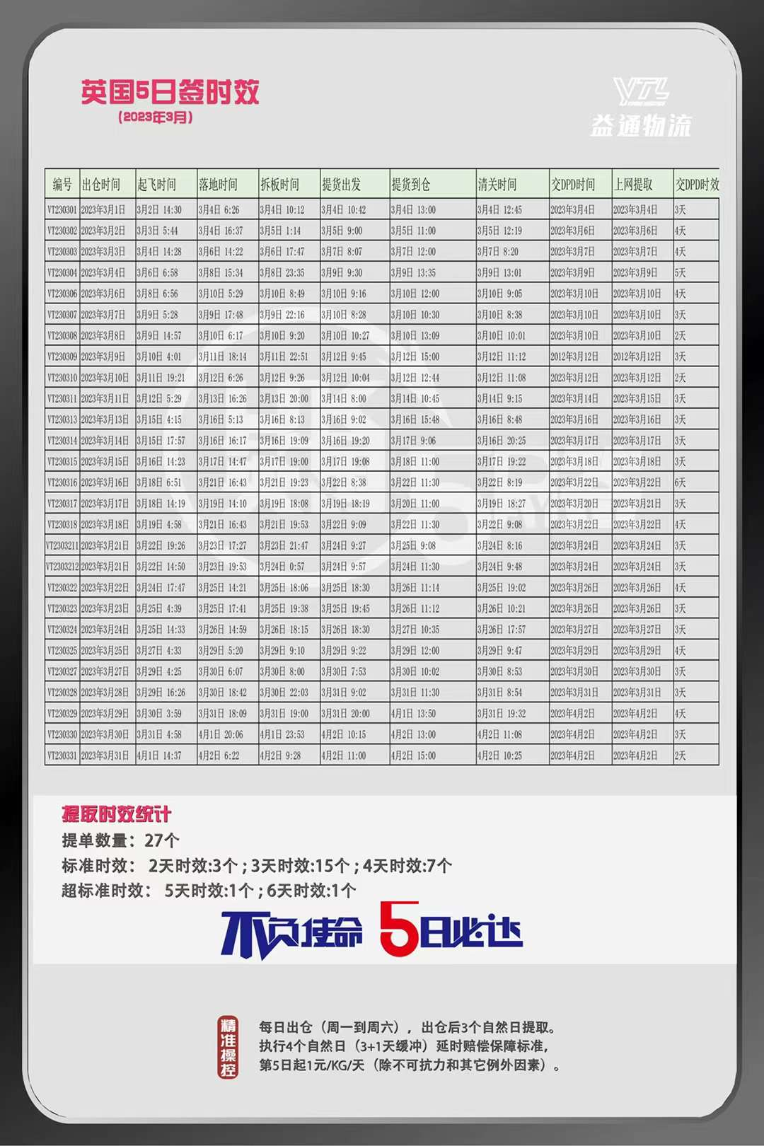 益通物流英国五日签时效(2023年3月)