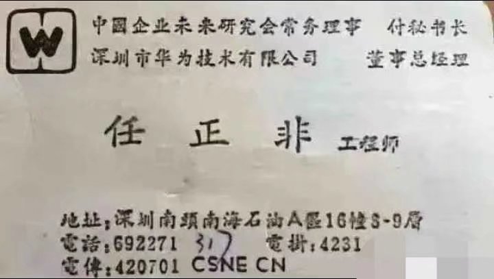 任正非任老前辈当年的名片是手写的,这是多么低调和节俭